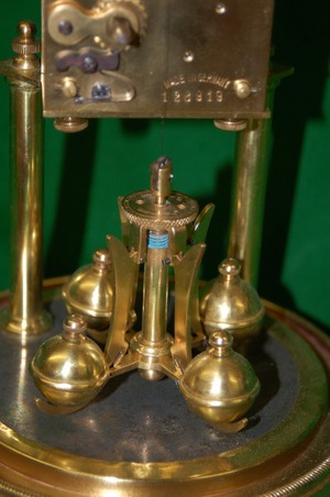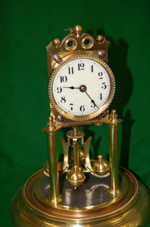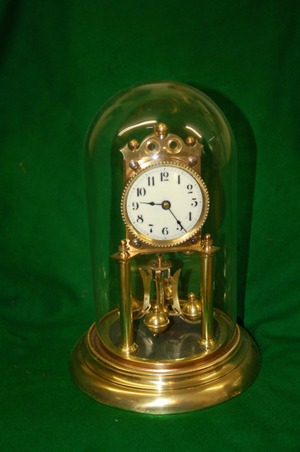 A fine ‘400-day’ clock featured here. The dial showing Arabic numerals. Early 20th century. Together with revolving pendulum constantly swinging. Finally the movement under a glass dome.