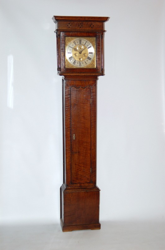 A lovely early 18th century 8 day oak grandfather clock. Together with a superb square brass dial signed Francis Robinson of Northampton. The dial with chapter ring and spandrels. Also with finely matted and engraved centre. Furthermore the lovely early feature of inside quarter divisions and ringed winding holes.