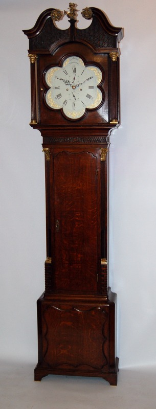 Outstanding and rare petal shaped white dial ‘8-day’ oak Longcase clock C.1770
