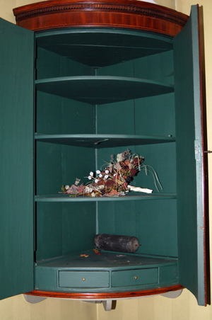 A lovely elegant mahogany with boxwood stringing corner cupboard.