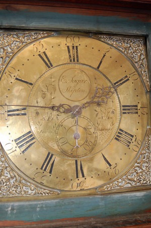 30HR oak Longcase clock by E Sagar of Skipton. late 18th century square brass dial. Together with chapter ring and spandrels. Also with polished and engraved centre. Lovely slim and elegant oak cabinet.