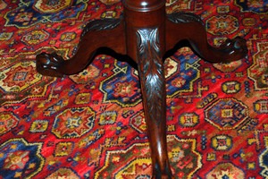 Featured here, a superb quality ‘plum pudding’ mahogany table. Shown with beautifully carved legs. C.1800. In addition lovely dish top design. To sum up a good quality piece of furniture.