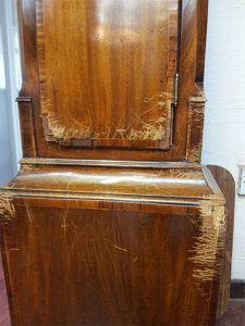 We have extensive stocks of over 200 Antique Longcase Clocks available unrestored awaiting restoration. All stock both restored and unrestored is kept in controlled environments for both temperature and humidity. If antiques are bought that have not been previously stored in the correct conditions as above, they are more likely to warp or split, whenever they are subject to central heating. It is advisable to keep antique furniture in R.H. between 40 and 65%.